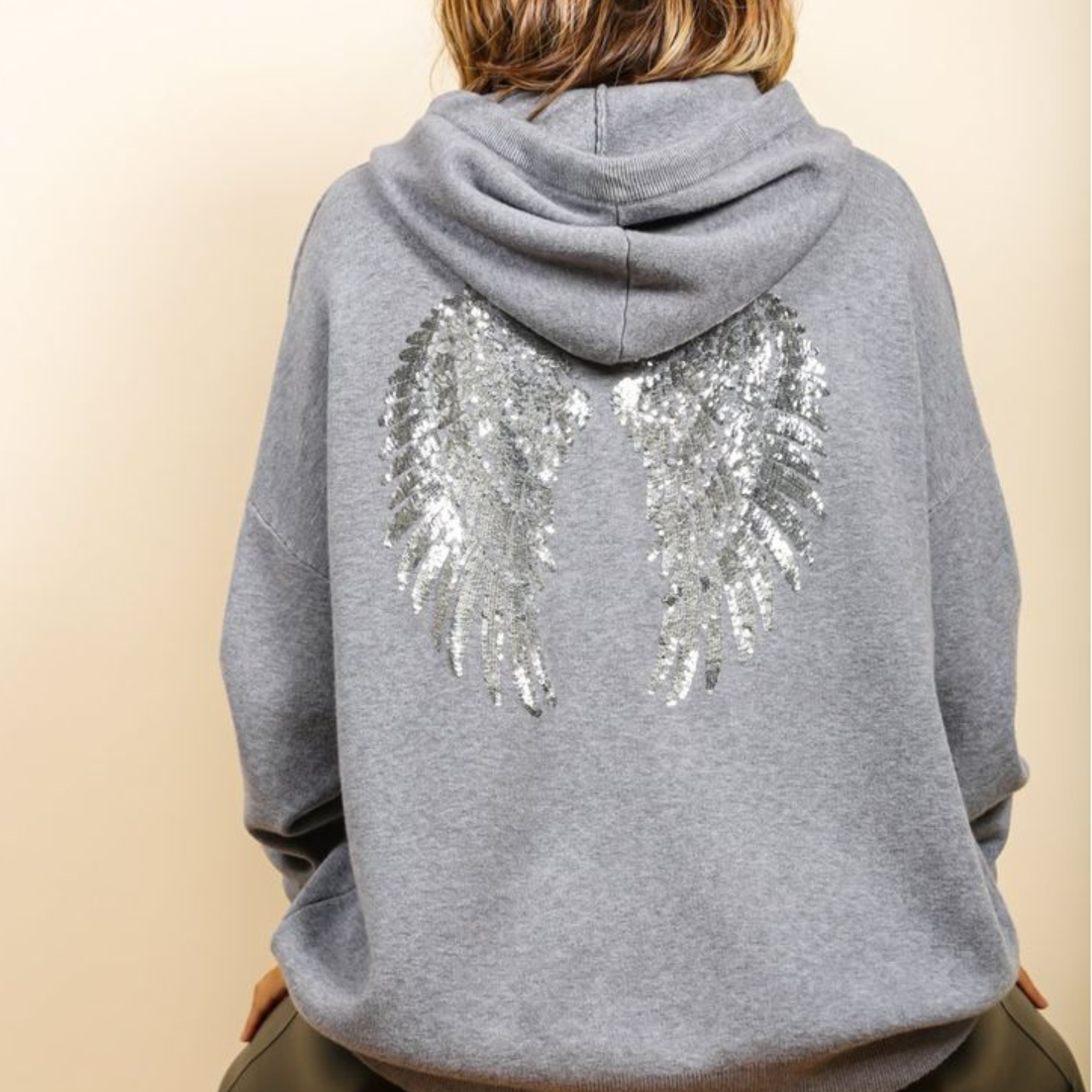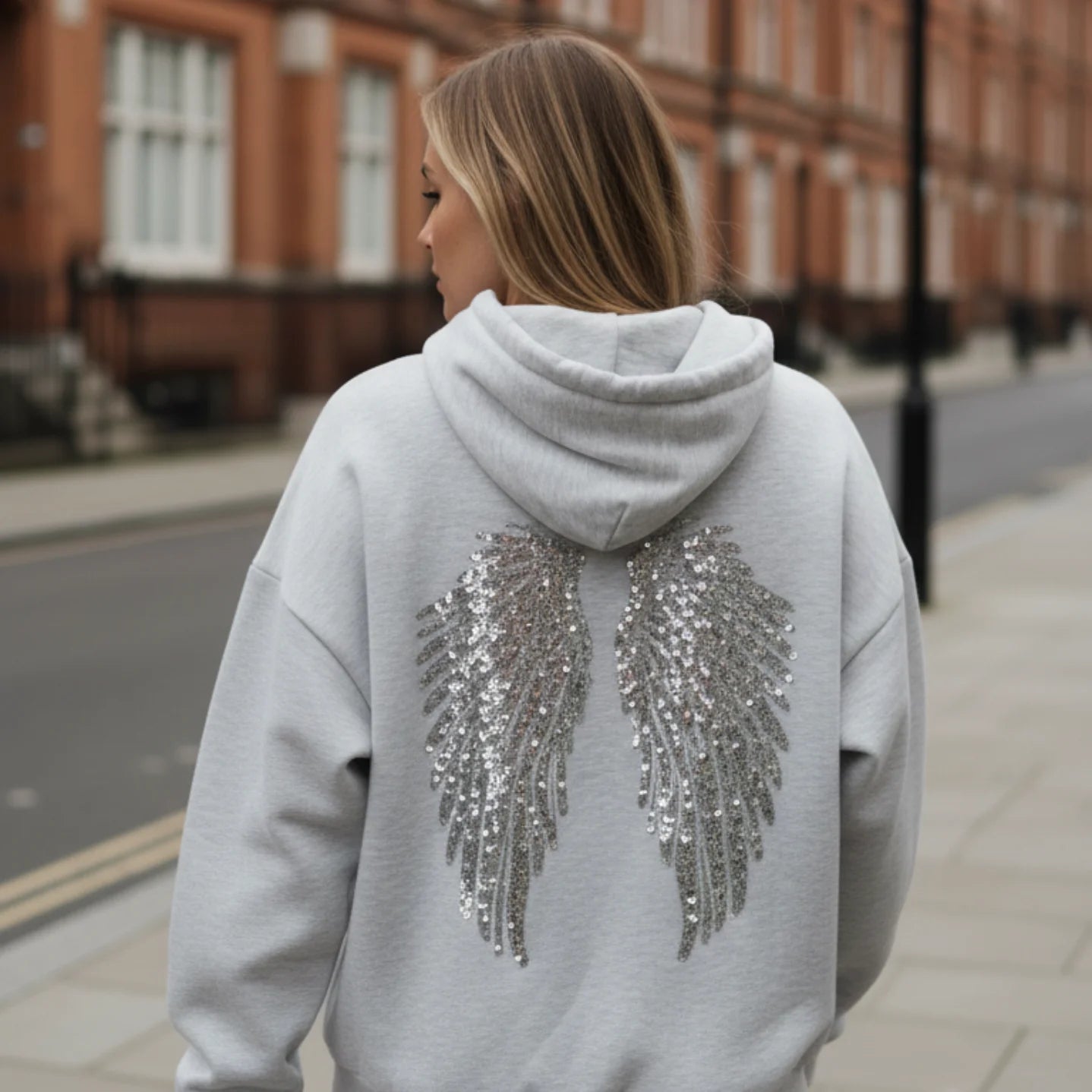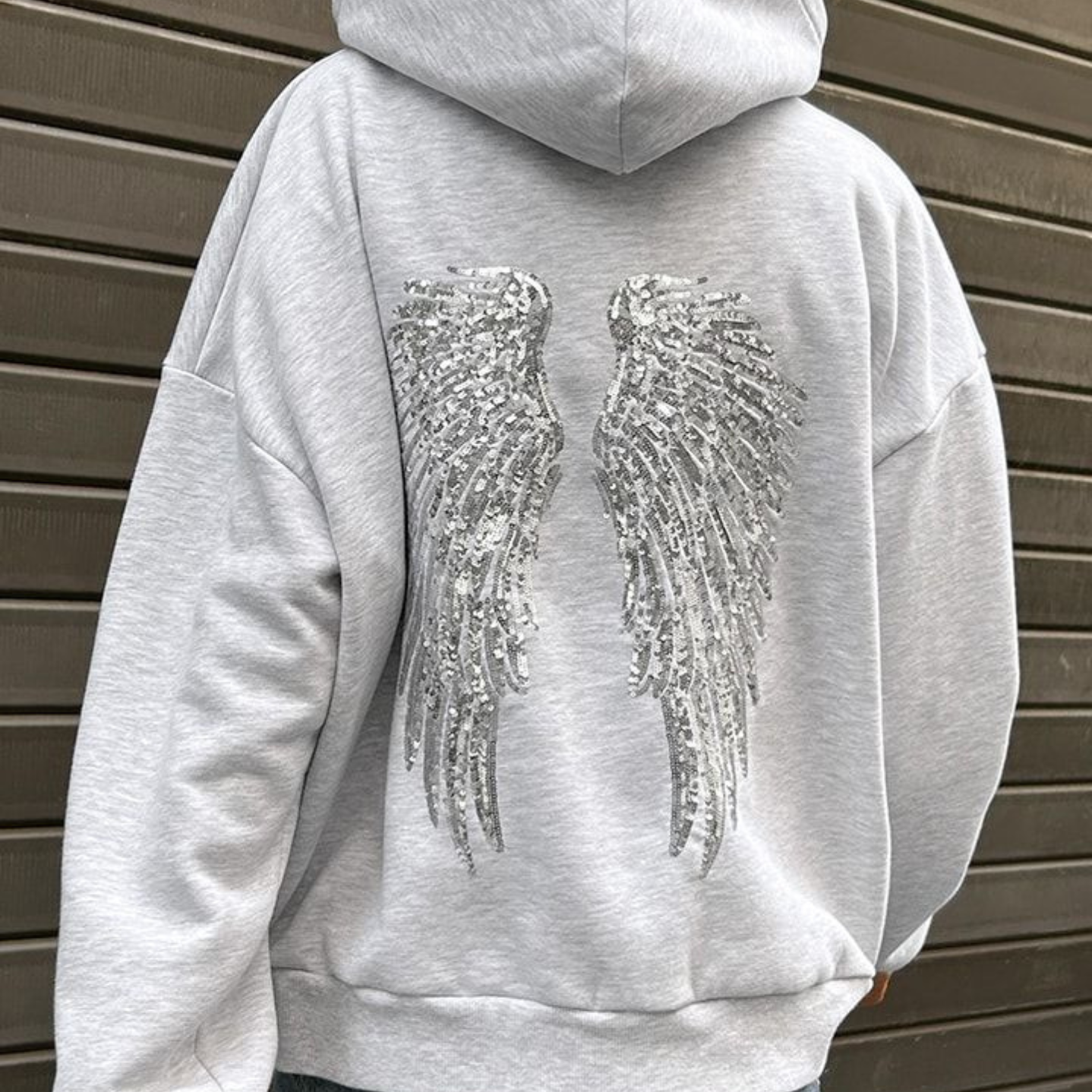 Turn your look into a statement with the WINGS Silver Glow Hoodie!