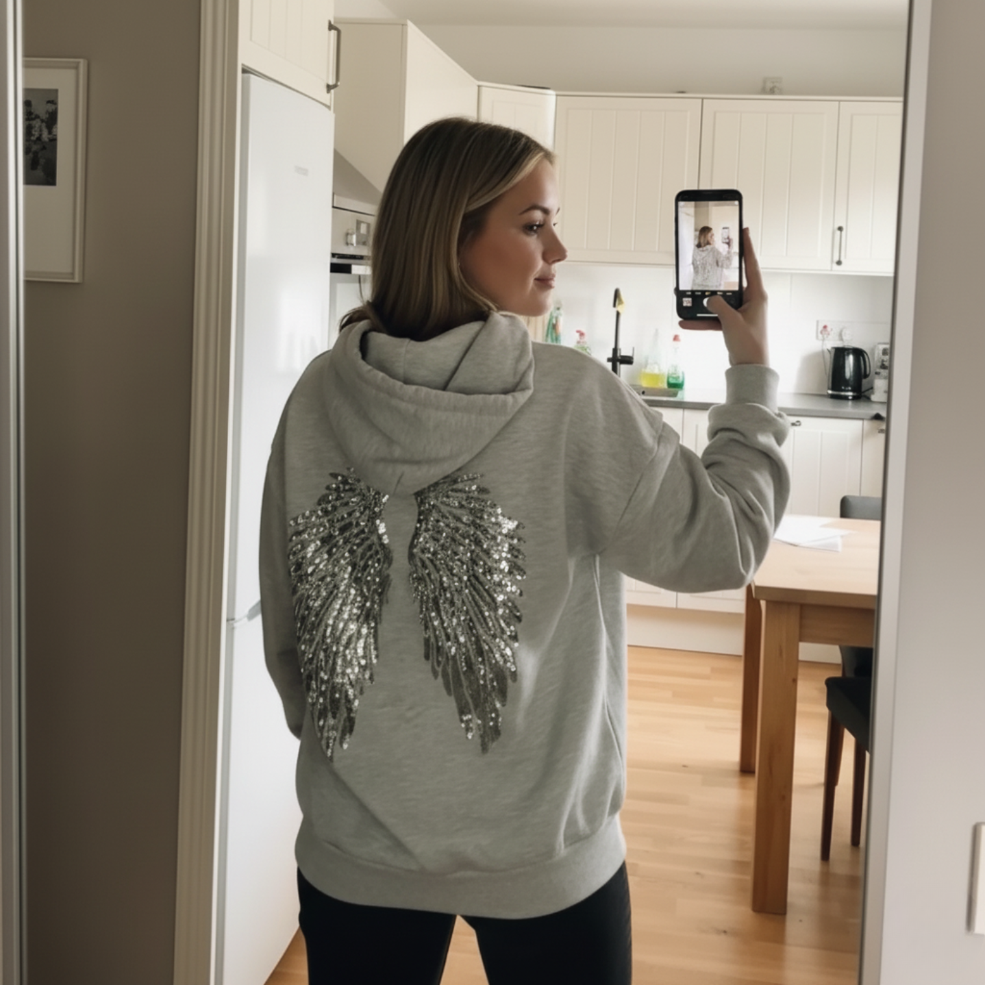 WINGS Silver Glow Hoodie — Shine Like a Queen